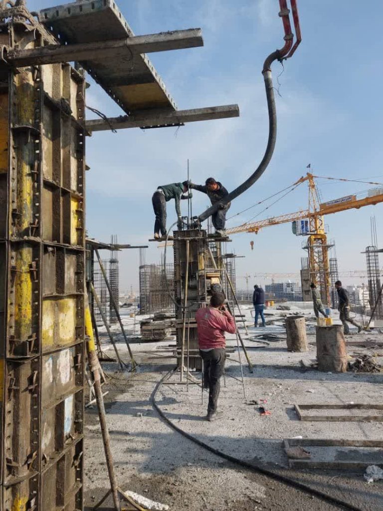 بتن ریزی دیوار و ستون های طبقه ۱۱ مسکونی بلوک ۲۴